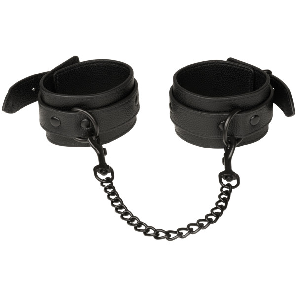 Die Handschellen sind aus schwarzem PU-Leder gefertigt, was ihnen ein exklusives Finish verleiht. Sie sind verstellbar, sodass sie für die meisten Größen passen.