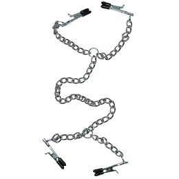 Die Klammern sind weich mit abgerundeten Gummispitzen, die nicht zu fest auf die Haut drücken. Alle Klammern sind mit einer Kette verbunden.