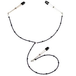 Die Spartacus Nippelklemmen mit Klitorisklemme wird mit einer wunderschönen Kordel mit violetten und schwarzen Glasperlen zusammengehalten (der Violett-Non kann auf dem Bild variieren).